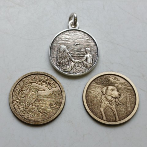When producing pendants and cuff-links, darkening the background to enhance the detail in the foreground just adds some character and charm, that hand engravers tend not to include, here this is done as standard, and very soon vitreous enamelling could also be available for a colour version.