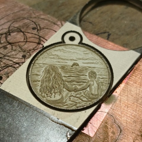 I can convert it into a digital file, transformed into something that my fiber laser engraving machine understands, and it can be engraved into pendants, cuff-links, earrings, anything we can supply.